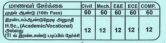 | Engineering Courses | 10% 0f the intake are allotted in each grade who have passed in respective trade. | 10% of the intake are allotted in each brand who have passed in respective trade |